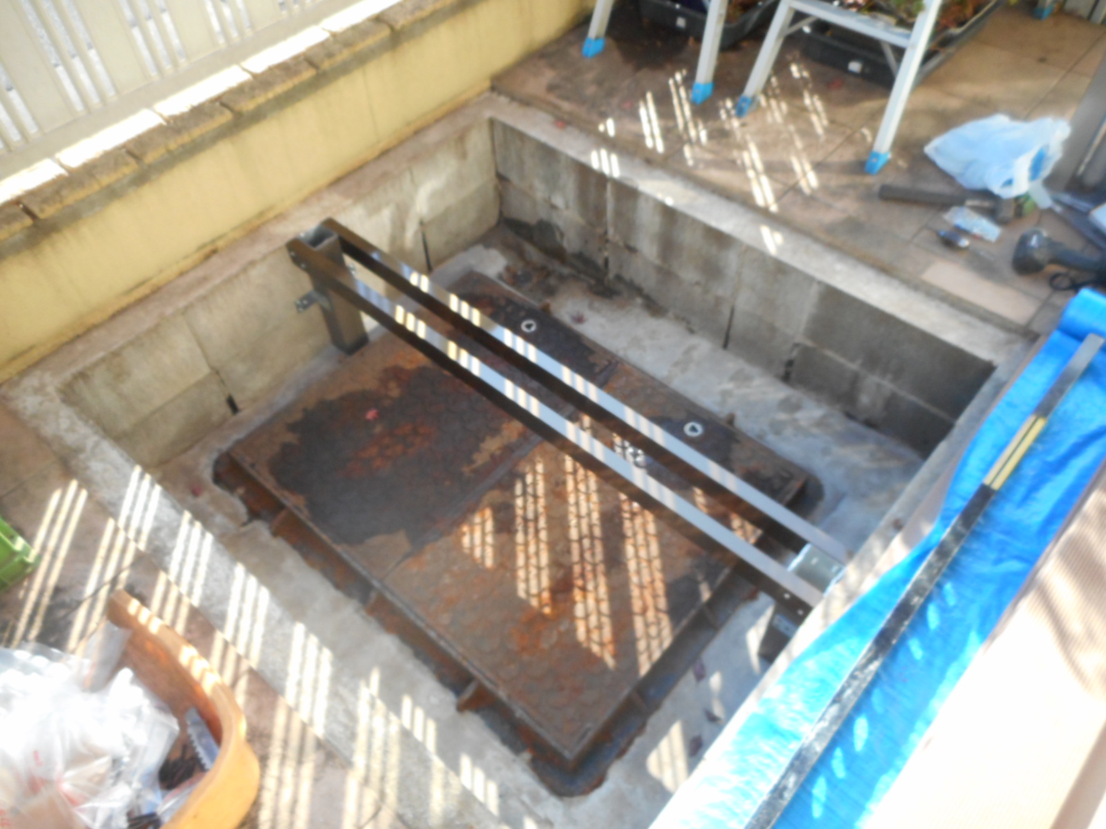 とあるお宅でこの蓋の上に点検用の木製蓋が朽ちてきたため改修を行ってほしいとの依頼をうけました。