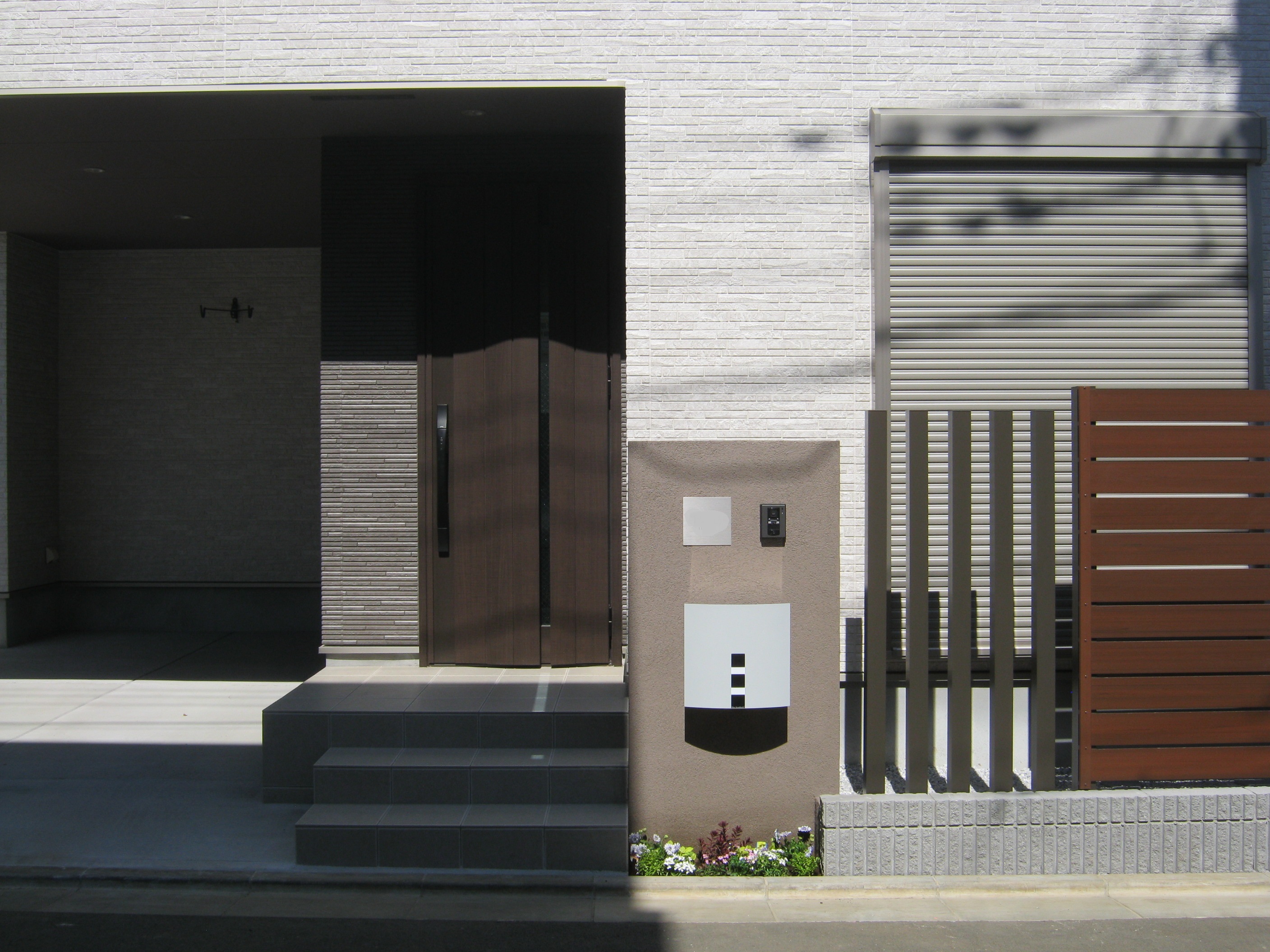 建物の茶系部分に合わせて門塀も茶系にしました^^