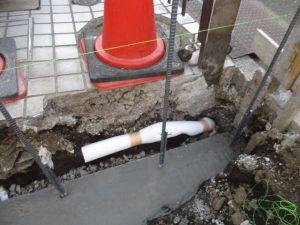 こちらはお隣様との隣地境界ブロックを解体したら、パイプが出てきました。