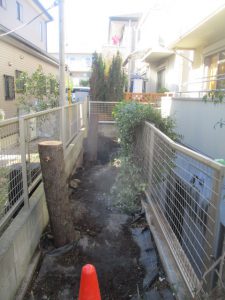 今回のメインテーマは、巨大化して手に負えなくなった植木の伐根伐採です。
