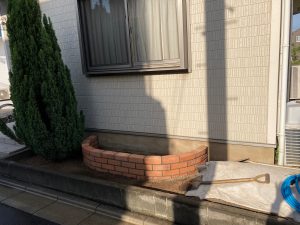 土を整地して、コンクリート基礎・レンガを積んで行きます。